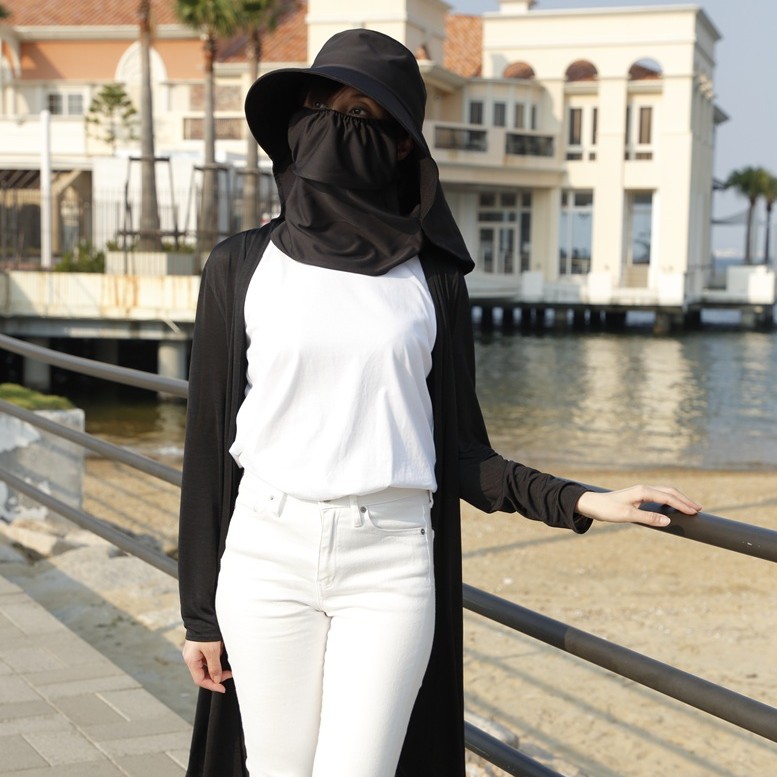髪・顔・首からデコルテまですっぽり覆う人気のフルフェイスハットです。