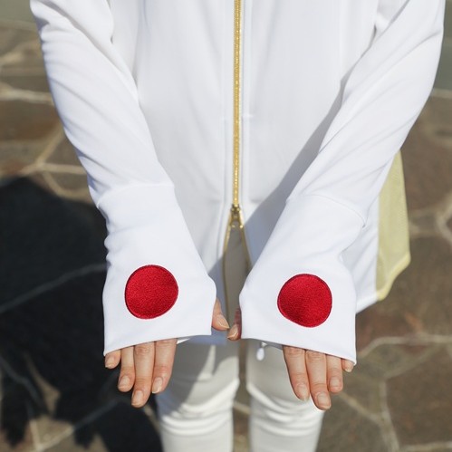 袖カフス部分:刺繍ワッペンではなく、生地に直接刺繍をあしらい、高級感ある日の丸に仕上げました。