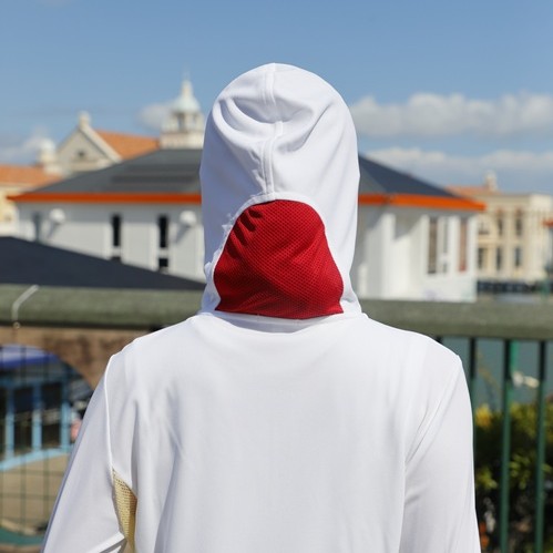 フード裏側部分:日の丸を表現した赤メッシュを採用