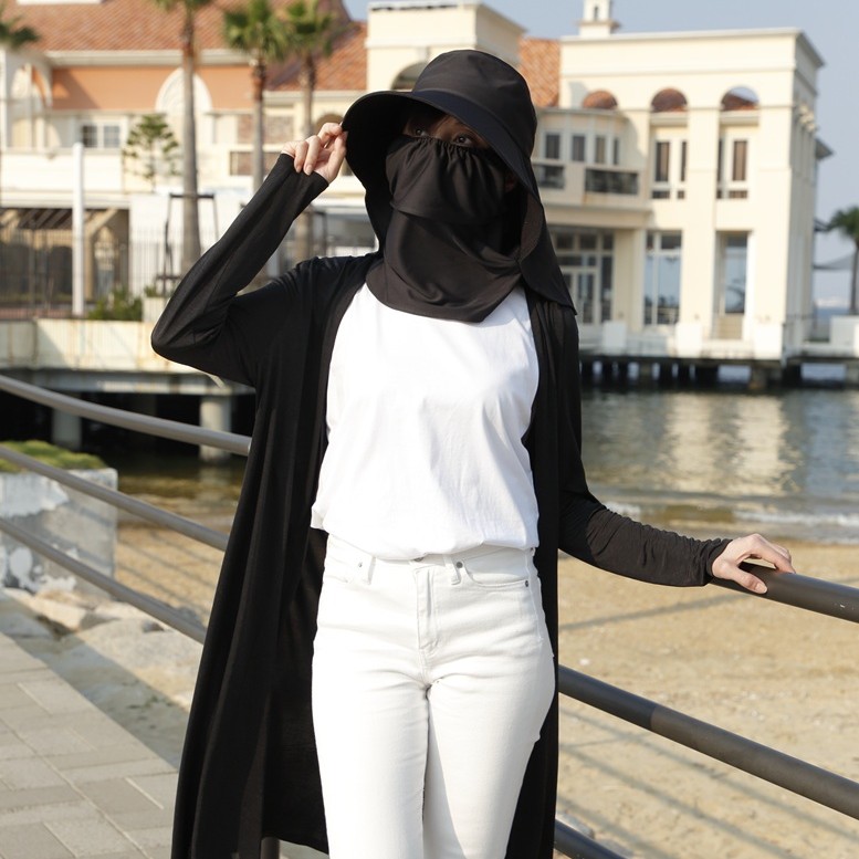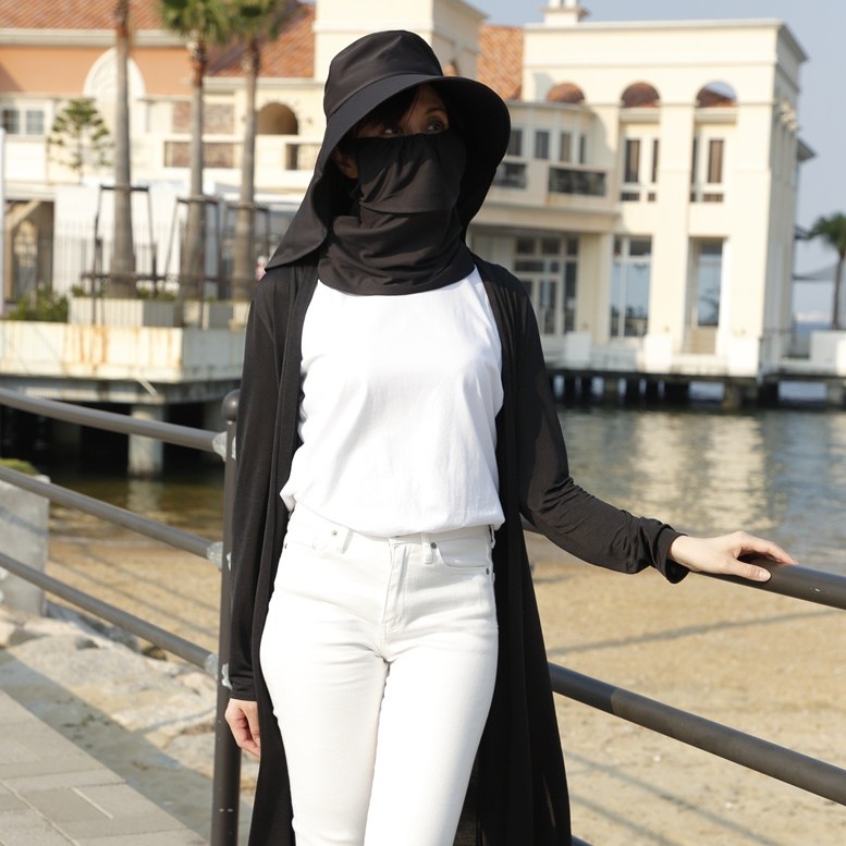 髪・顔・首からデコルテまですっぽり覆う人気のフルフェイスハットです。