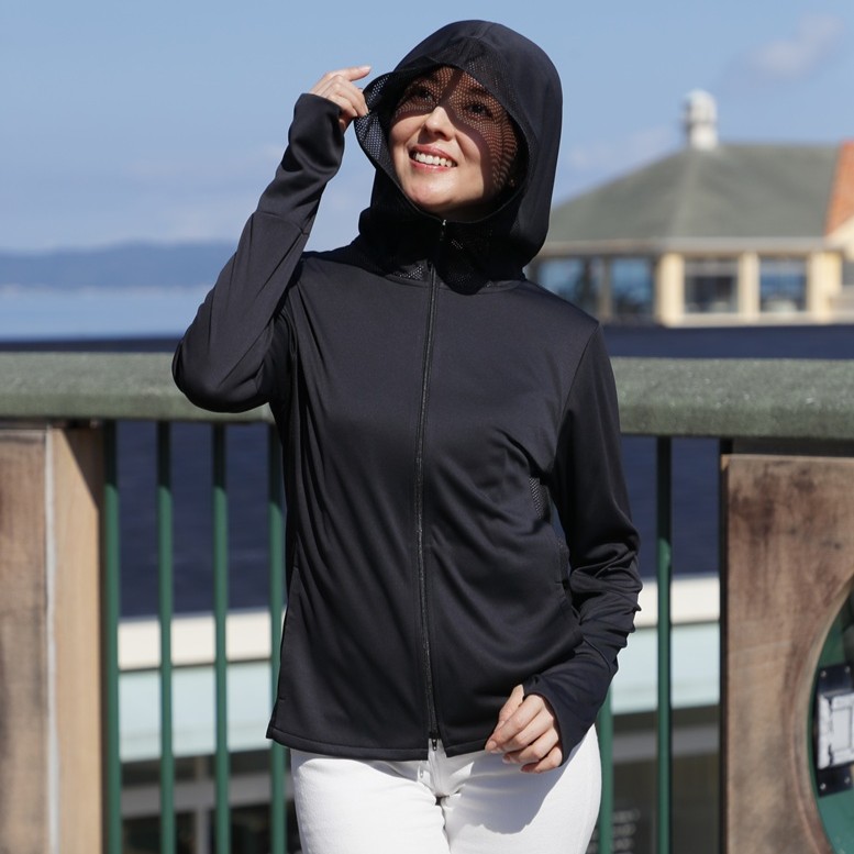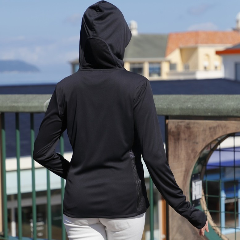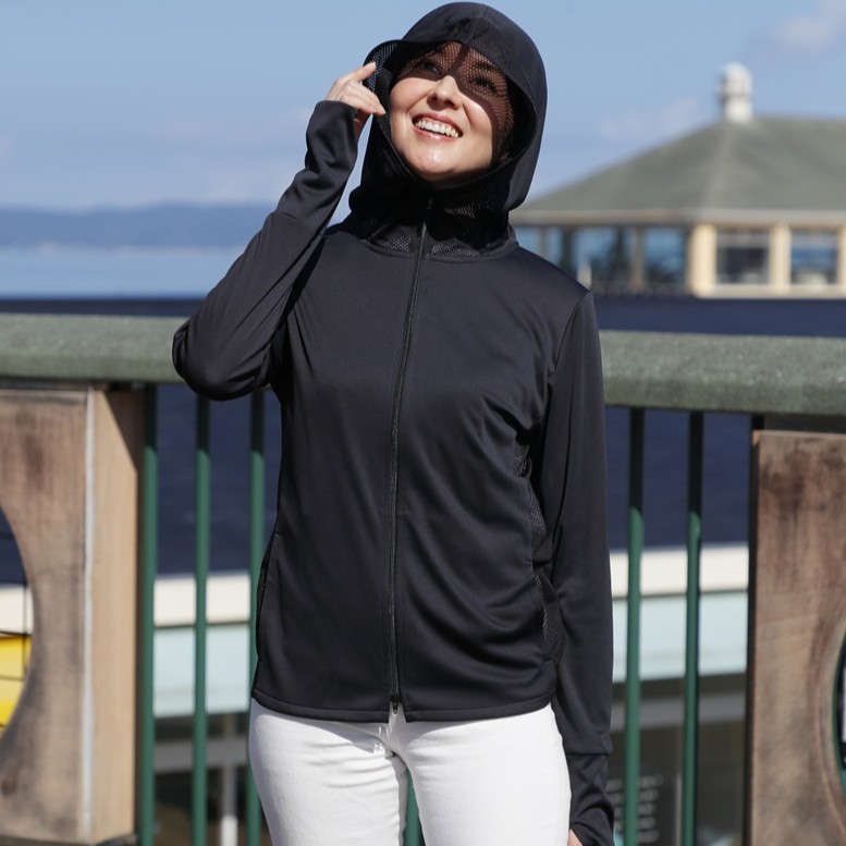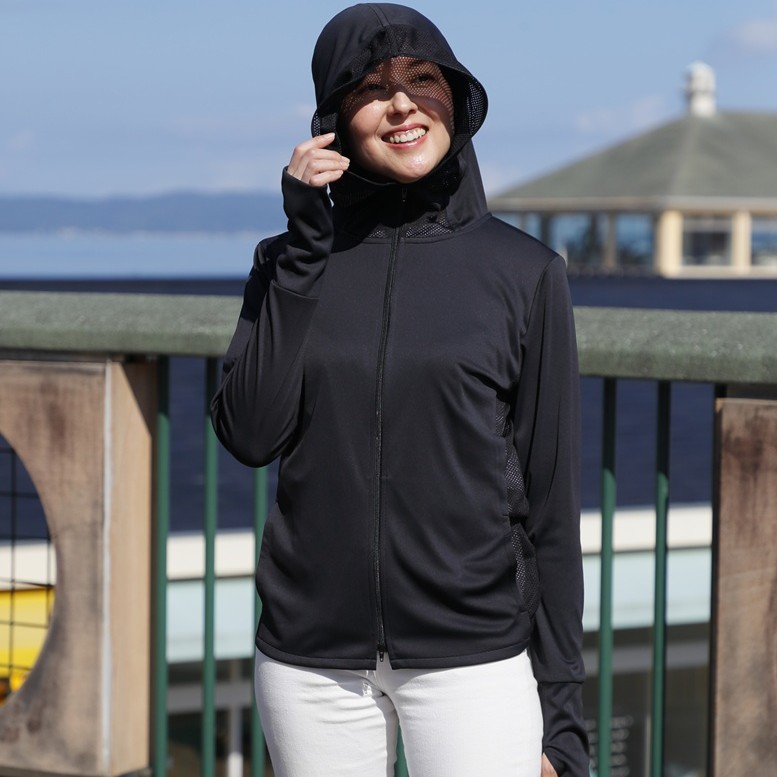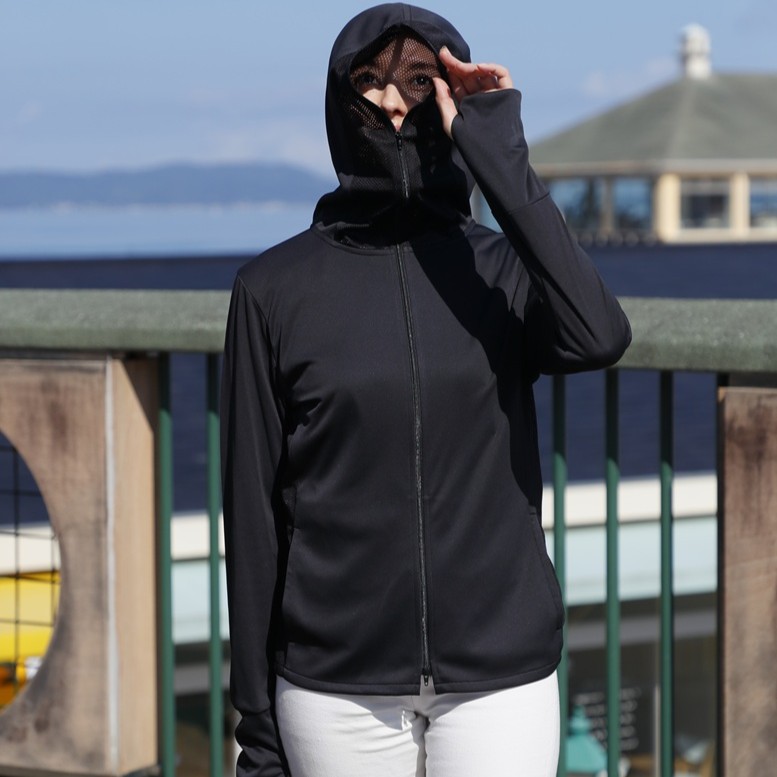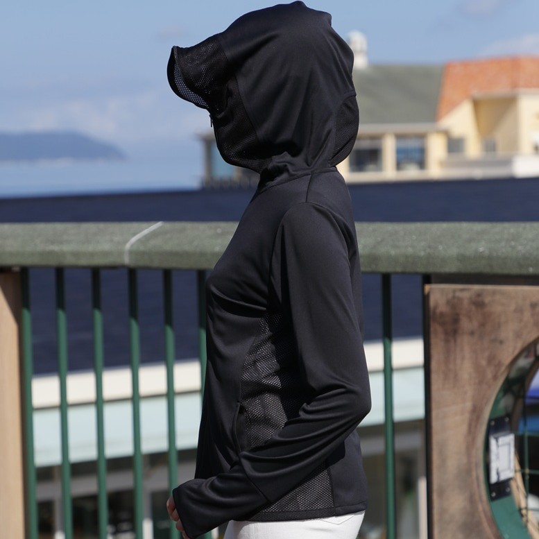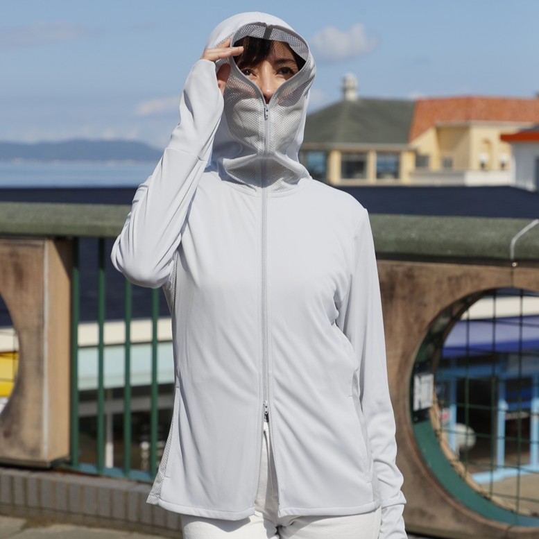 若々しい印象の細見えスタイルに完全プロテクトのフード部分がドッキングした最高にカッコイイ”魅せる”UVパーカーです。
