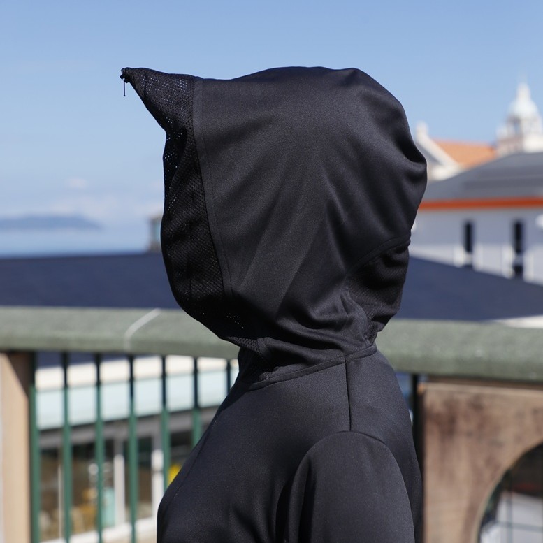 ●フード前方部・首裏・脇はメッシュ生地で通気性抜群