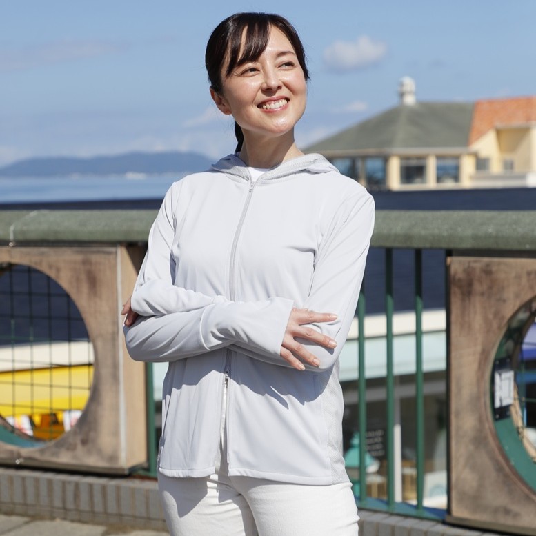 約20年の歳月をかけて最も理想に近づけた業界最高レベルのSARAオリジナル機能性生地を採用。紫外線対策のプロ集団である我々が自信をもってオススメする生地は究極に薄く、約20%(旧バージョン比)もの軽量化を実現したにも関わらず、紫外線保護指数はUPF50+(最高値)を実現。高い吸汗速乾機能に太陽熱を遮る遮熱機能も兼ね備えたハイグレードな素材です。また、生地の柔らかさ・しなやかさが増して心地よい肌触り。柔らかさに包み込まれる気持ち良さをぜひ体感ください。