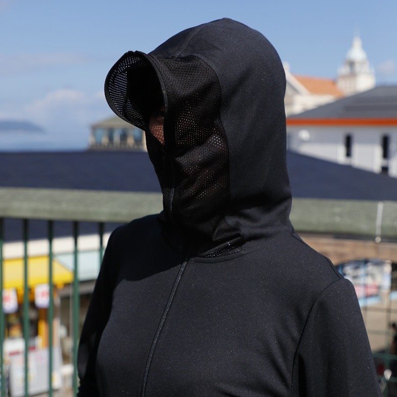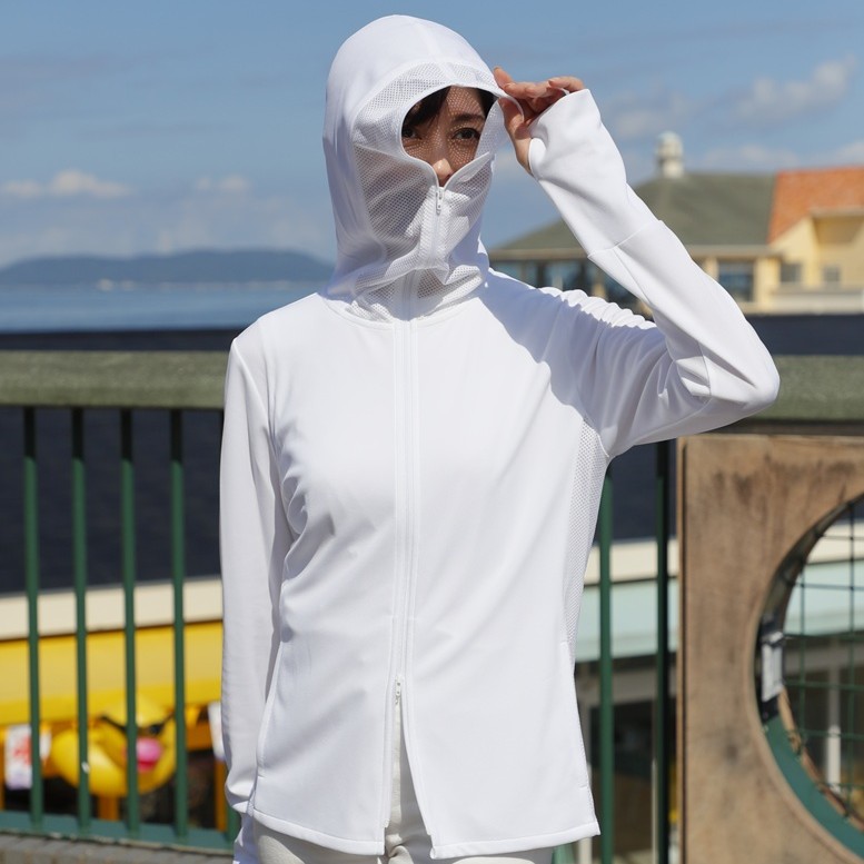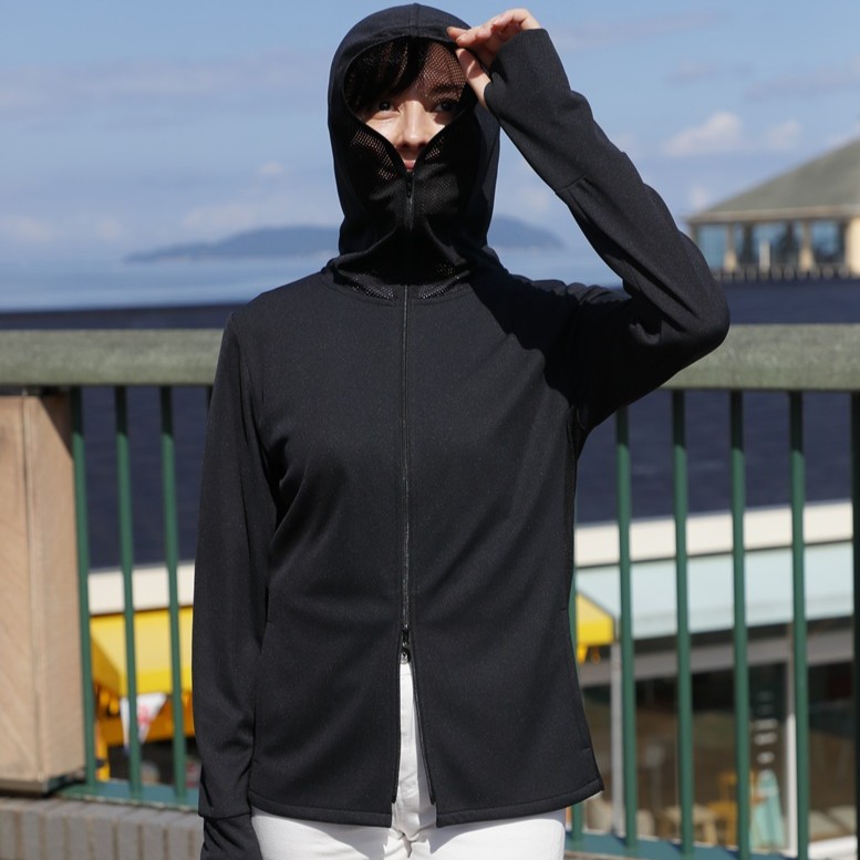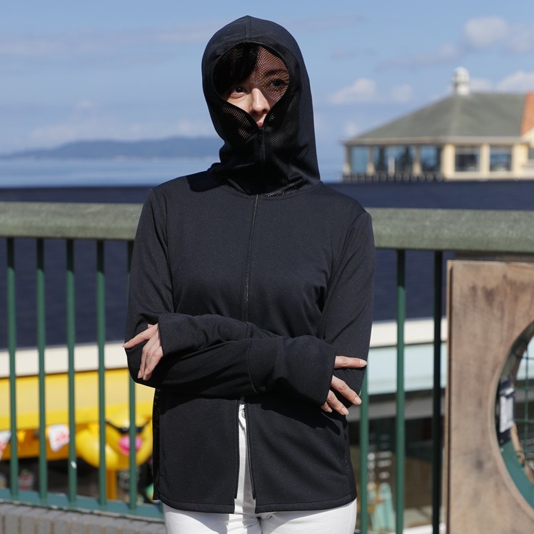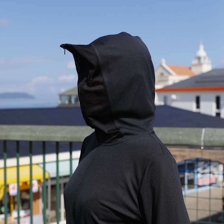 若々しい印象の細見えスタイルに完全プロテクトのフード部分がドッキングした最高にカッコイイ”魅せる”UVパーカーです。