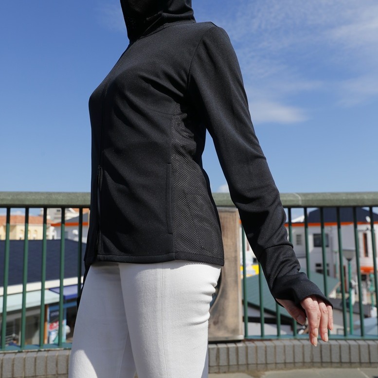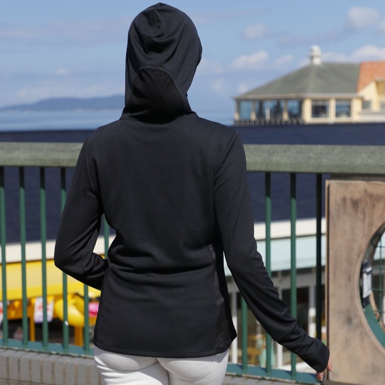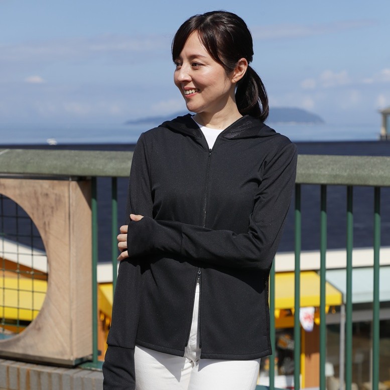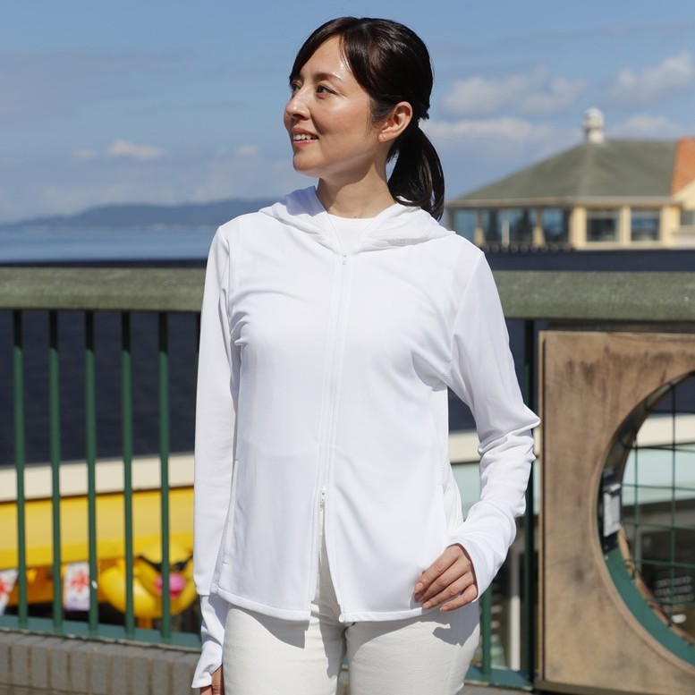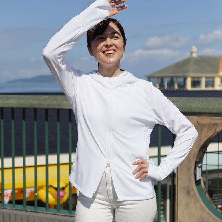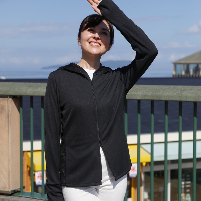 若々しい印象の細見えスタイルに完全プロテクトのフード部分がドッキングした最高にカッコイイ”魅せる”UVパーカーです。